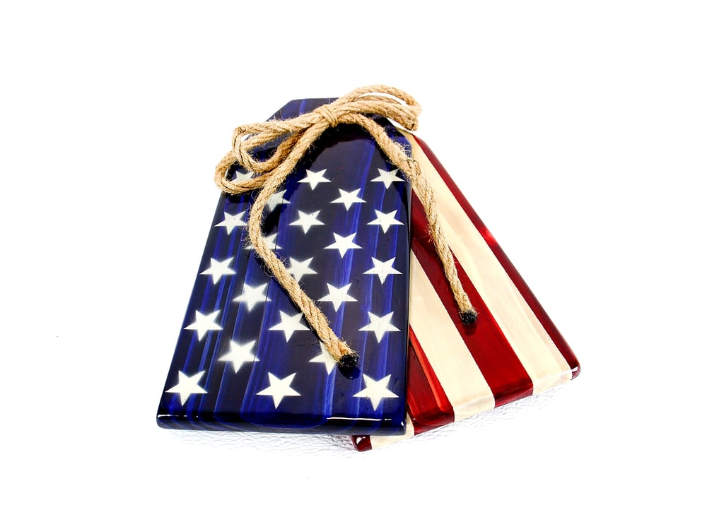 American Flag Stars and Stripe Cedar Wood Wall Decor Tags. Celebrate timeless American pride with this handcrafted cedar wood patriotic wall decor. Made out of Cedar. The wood grain has been burned which gives this almost a 3D effect. Can be hung inside or out! Featuring rich natural tones and a rustic jute accent, made to add warmth, charm, and Americana style to your home. Simply hung on nail.