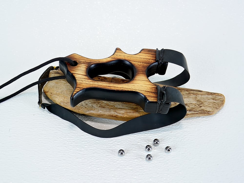 We used a method called Pyrolysis, also known as the Shou Sugi Ban Technique and burned into the wood making a custom unique sling shot.