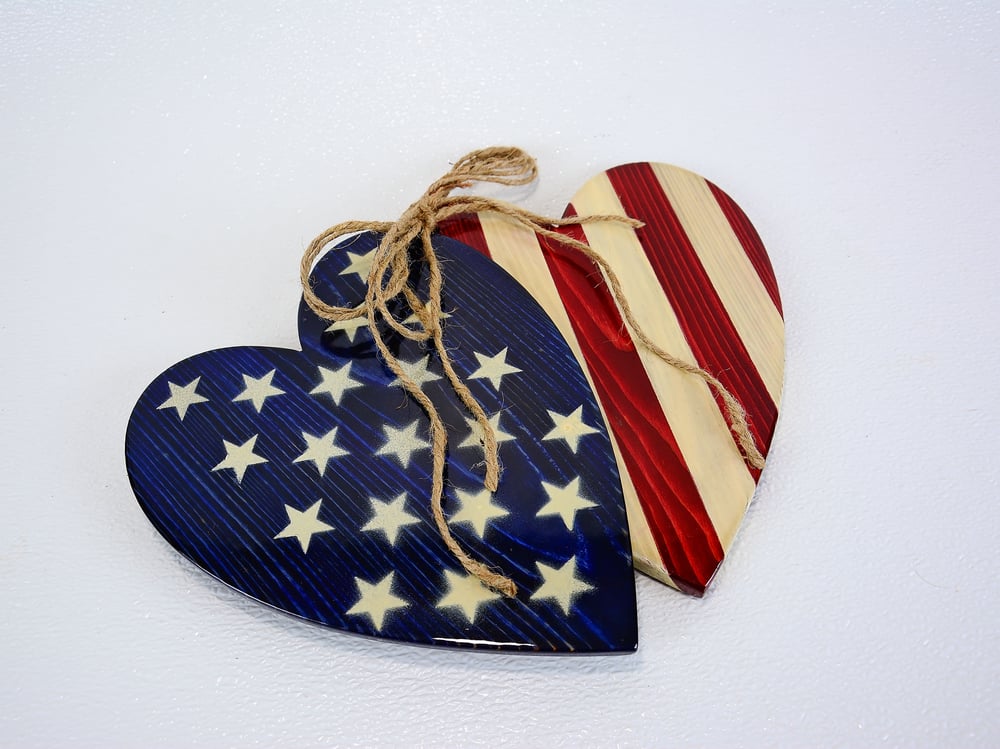 Hearts with American Flag Strips and Stars Wall Decor, Patriotic Decor