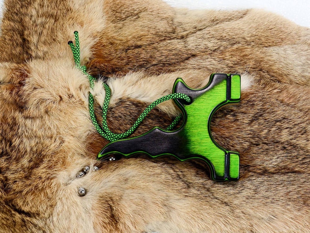 Wooden Slingshot, Twister Frame, Tie on band style, Neon Green Catapult, Outdoorsmen gift