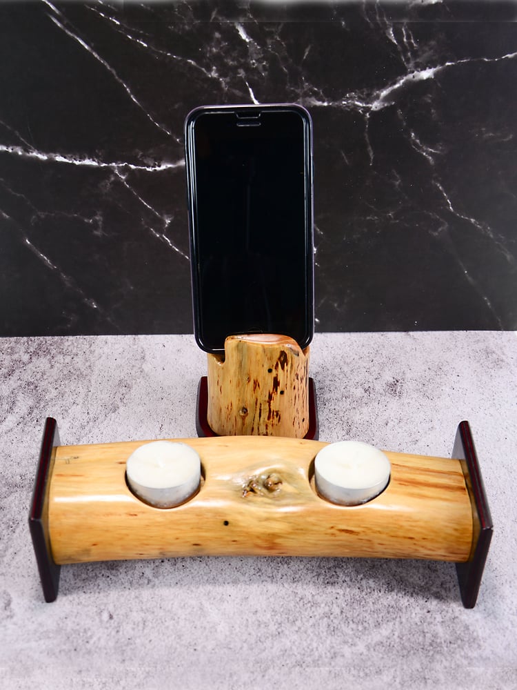 Wooden Tea Light Candle Holder with Matching Cell Holder Set